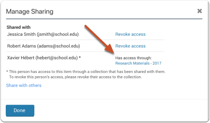 - When the collaborator tries to open the item, they will see a message explaining that they have lost access.