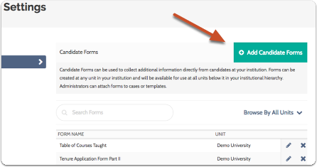 Candidate Forms are designed to collect information directly from candidates and are part of their packet requirements. They can be created at any unit level and will be available to all units below it in the hierarchy.