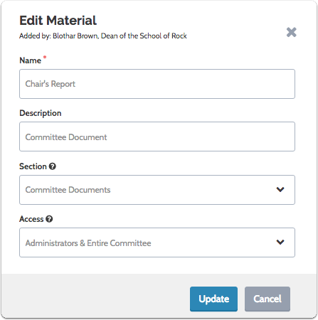 RPT Unit Administrators or Case Managers can control access to packet sections, share materials with committee members or candidates, and fulfill requirements by adding documents on behalf of a candidate. Uploaded documents are stored in the candidate's Dossier and cannot be moved out once added to the Candidate Documents section. The uploader's name, along with the date, is displayed on the candidate's case page.