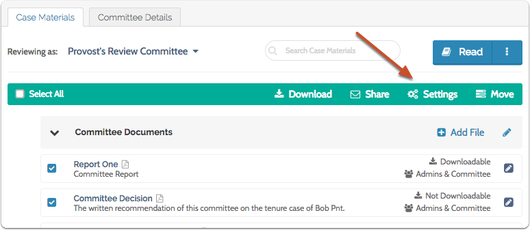 Unit Administrators, Case Managers, and Committee Managers have the ability to manage access to case materials and determine whether downloads are permitted, based on institutional settings. Access levels can be configured to Administrators Only, Administrators & Committee Managers, or Administrators & Entire Committee. Follow the directions below to edit or set the access settings and download privileges of case materials in Interfolio Review, Promotion, & Tenure. (RPT).