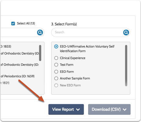 Administrators, Committee Managers, and EEO Officers in Interfolio Faculty Search (FS) can generate a Forms Report that provides a visual representation of data collected from EEO questionnaires and custom application forms. The report can be viewed onscreen or downloaded as a CSV. EEO Officers and Administrators with full EEO access can view a detailed report of applicant responses to EEO forms, while those without EEO access can only see a summary of collected data for the units or positions to which they have access.