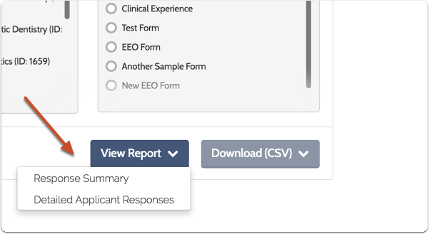 - Click View Report to view the data online. Select whether you would like to view the Response Summary or Detailed Applicant Responses.