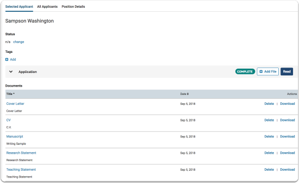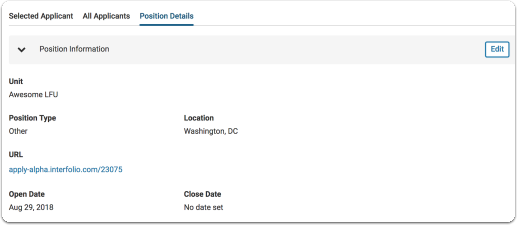 - Select the tabs to view the applicants and position details.