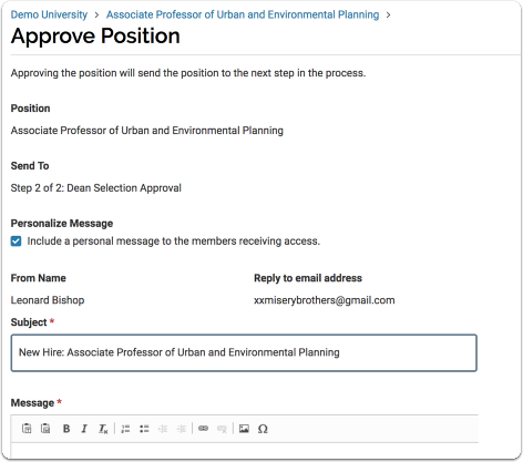 - Click Review Position in the sent email to navigate to the Selection Approval page.
