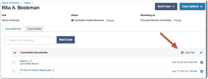 - Click Add File adjacent to the desired section on the Case Materials tab.