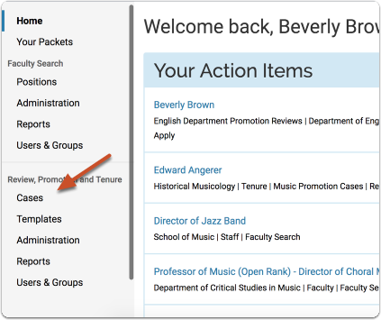 - Navigate to the Cases and click the hyperlinked Name of the desired candidate's case to view their case.