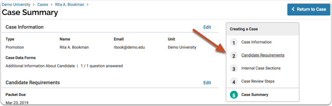 ✔ Candidates can only move their own packet requirements since they can't access Internal Case Sections. |
