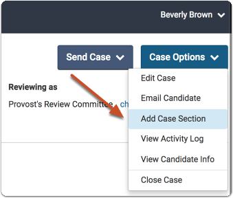 RPT Unit Administrators or Case Managers can control access to packet sections, share materials with committee members or candidates, and fulfill requirements by adding documents on behalf of a candidate. Uploaded documents are stored in the candidate's Dossier and cannot be moved out once added to the Candidate Documents section. The uploader's name, along with the date, is displayed on the candidate's case page.