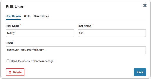 When adding users to the program, Unit Administrators, Case Managers, and Committee Managers have the option to send a personalized email message welcoming the new user to the program. If this email is lost, or if for any other reason a Unit Administrator needs to send it again, the invitation email can be re-sent from the Edit User window that is accessed from User & Group Management. This article explains how to resend the invitation email if necessary.
