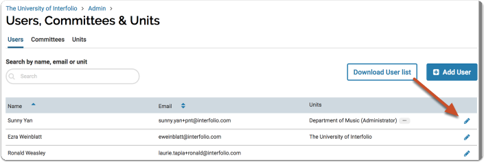 - Click the Edit (pencil) icon adjacent to the desired user to resend the invitation.