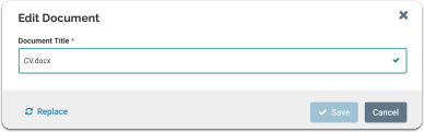 - The Edit Document window will display where you can change the Document Title or Replace the document altogether.