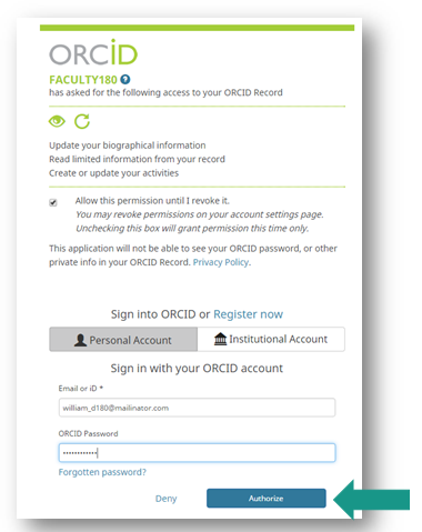 3. The faculty member must grant access to their ORCiD account.