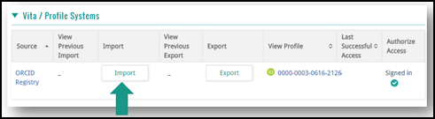 1. Click Import under the View Profile column in the Vita/Profile Systems section.