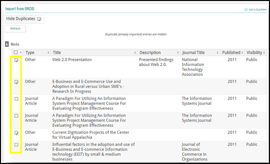4. The Import from the ORCID results will display. The possible upload results are: